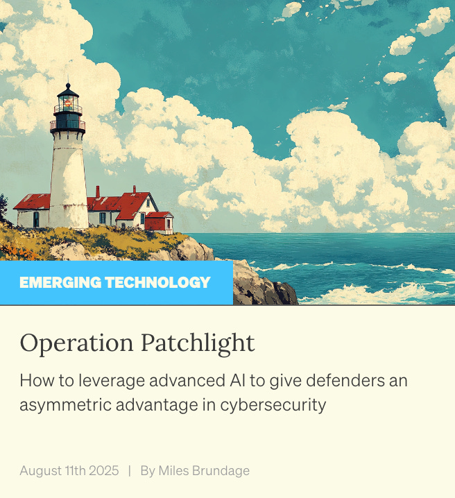 In “Operation Patchlight,” I describe two prongs of a vision for using AI to speed up cyberdefense: