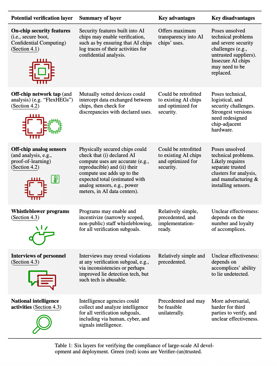A figure from the first paper outlines six different “layers” of AI verification.